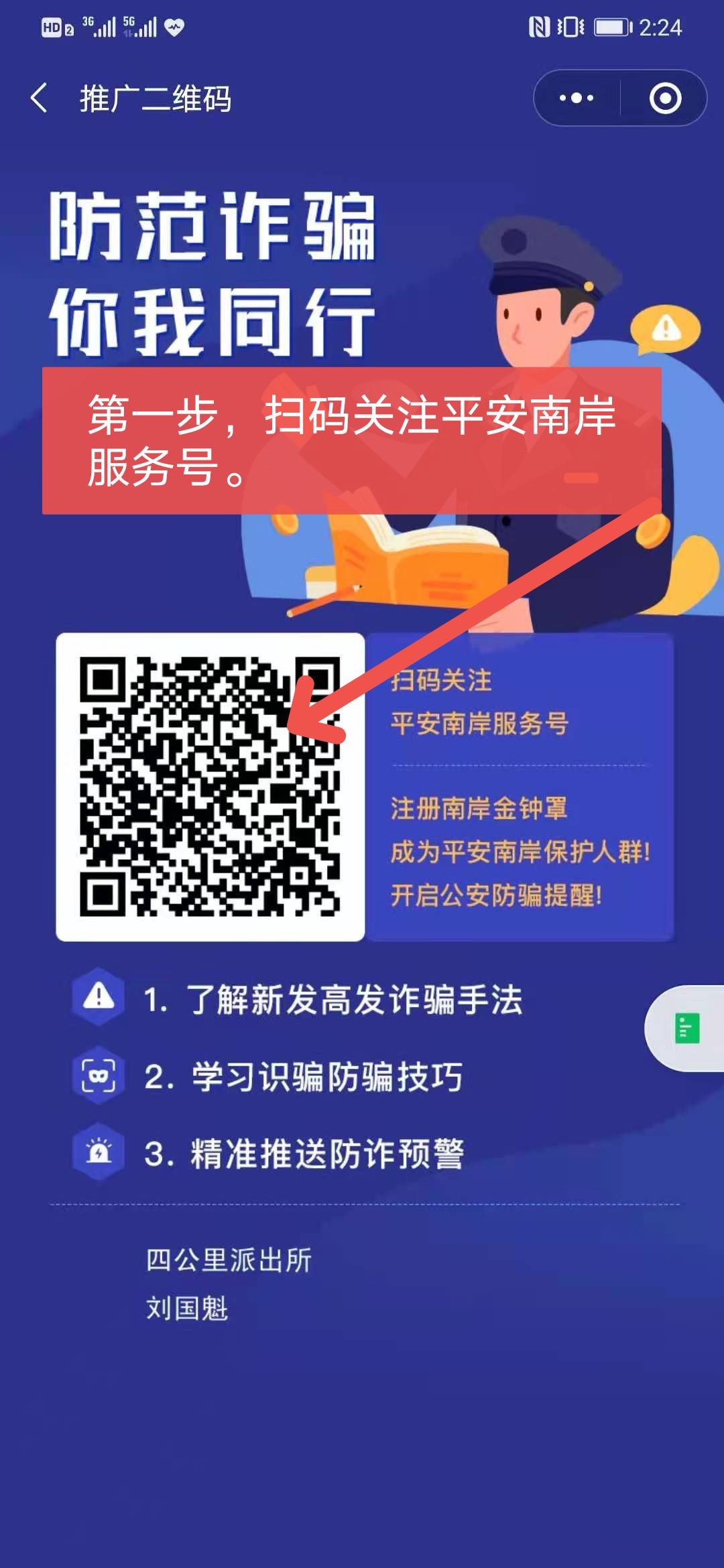 【第一步】:扫码关注“平安南岸”服务号