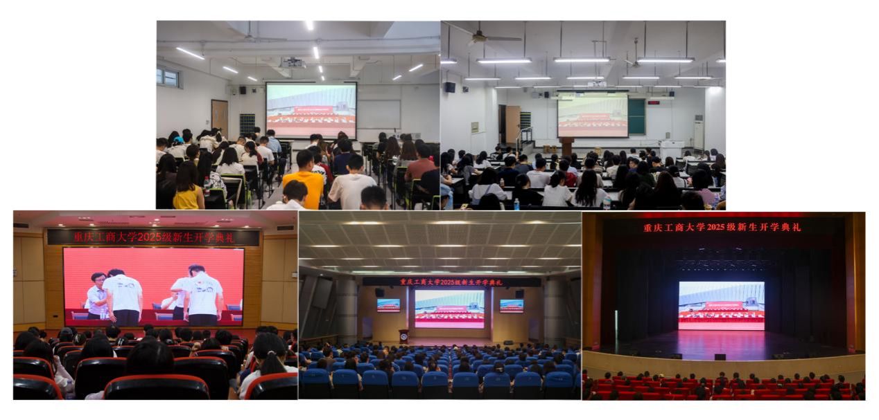 开学典礼在学校官方抖音号和视频号同步直播,南岸校区、兰花湖片区组织2025级新生在教室集中收看。