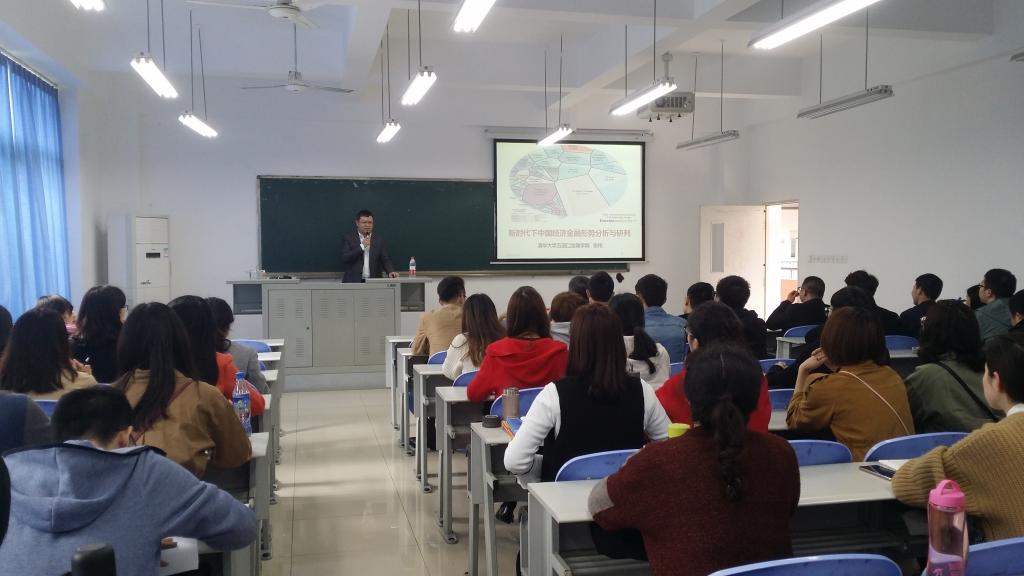 2018年3月26日下午2点,清华大学五道口金融学院张伟博士在田家炳教学楼50306教室,以新时代下中国经济金融形势分析与研判为题,为威尼斯官网财金学子作了一场内容丰富的前沿讲座。学院财税系副主任朱沙、金融工程系主任张理平等老师和同学们一同聆听了讲座。讲座由财政金融学院副院长曾胜教授主持。